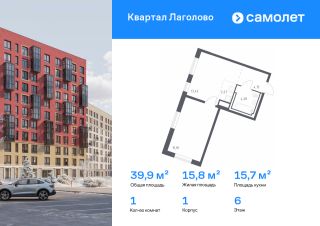 Строим кварталы для жизни с заботой о будущем. Предлагается 1-комнатная квартира комфорт-класса 39,93 кв.м в корпусе 1 на 6 этаже, в ЖК "Квартал Лаголово"