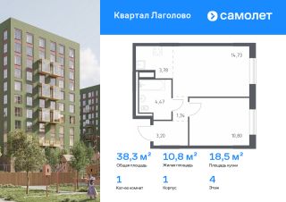 Строим кварталы для жизни с заботой о будущем. Предлагается 1-комнатная квартира комфорт-класса 38,32 кв.м в корпусе 1 на 4 этаже, в ЖК "Квартал Лаголово"