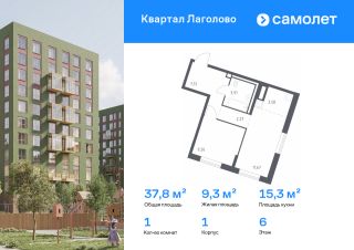 Строим кварталы для жизни с заботой о будущем. Предлагается 1-комнатная квартира комфорт-класса 37,81 кв.м в корпусе 1 на 6 этаже, в ЖК "Квартал Лаголово"