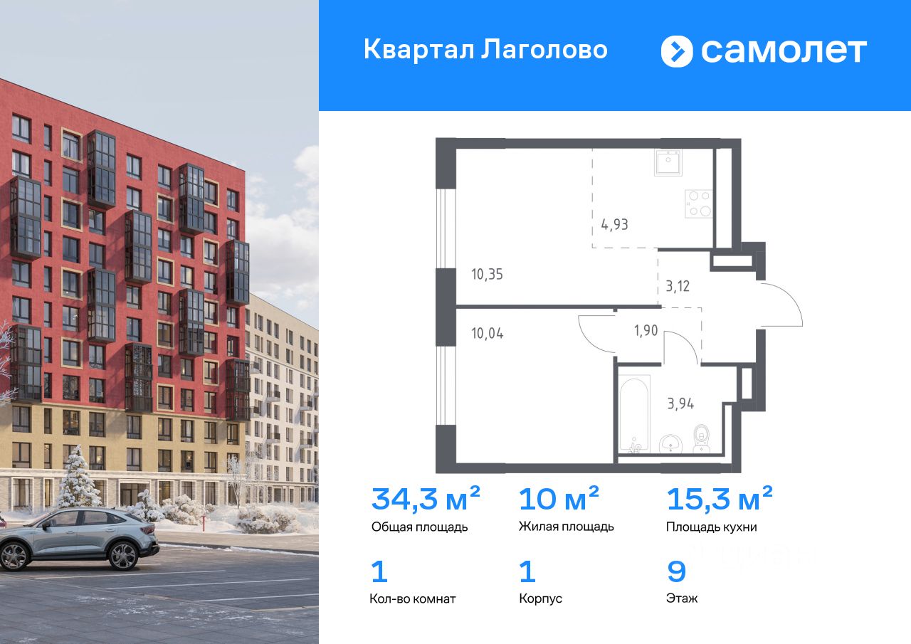 Строим кварталы для жизни с заботой о будущем. Предлагается 1-комнатная квартира комфорт-класса 34,28 кв.м в корпусе 1 на 9 этаже, в ЖК "Квартал Лаголово"