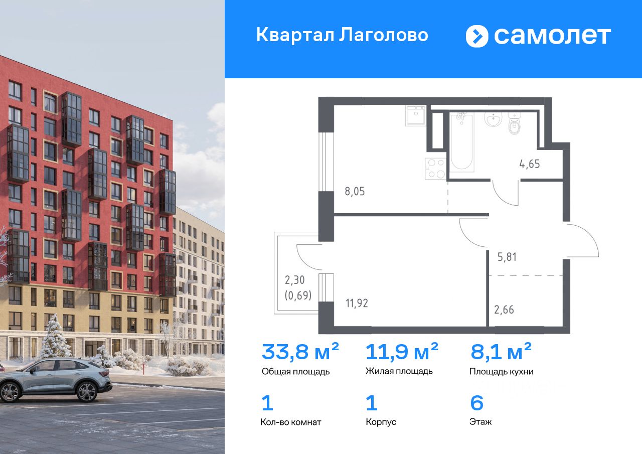 Строим кварталы для жизни с заботой о будущем. Предлагается 1-комнатная квартира комфорт-класса 33,78 кв.м в корпусе 1 на 6 этаже, в ЖК "Квартал Лаголово"
