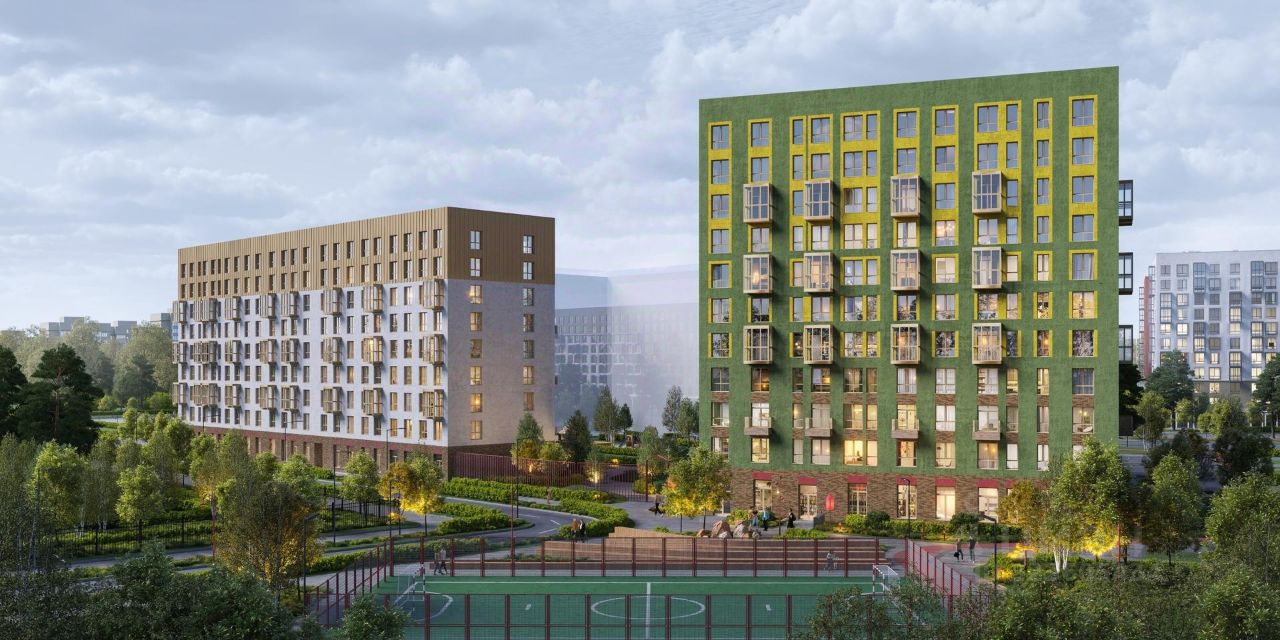 Дома высотой до 11 этажей с панорамными балконами выполнены в скандинавском стиле.