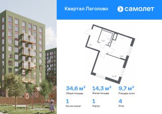 Строим кварталы для жизни с заботой о будущем. Предлагается 1-комнатная квартира комфорт-класса 34,56 кв.м в корпусе 1 на 4 этаже, в ЖК "Квартал Лаголово"