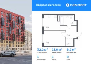 Строим кварталы для жизни с заботой о будущем. Предлагается 1-комнатная квартира комфорт-класса 32,21 кв.м в корпусе 1 на 8 этаже, в ЖК "Квартал Лаголово"