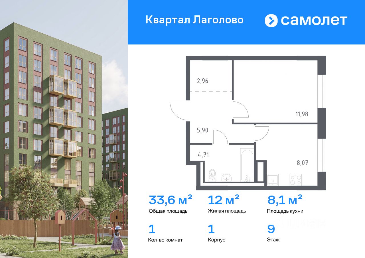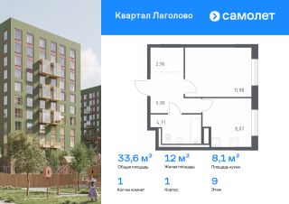Строим кварталы для жизни с заботой о будущем. Предлагается 1-комнатная квартира комфорт-класса 33,62 кв.м в корпусе 1 на 9 этаже, в ЖК "Квартал Лаголово"