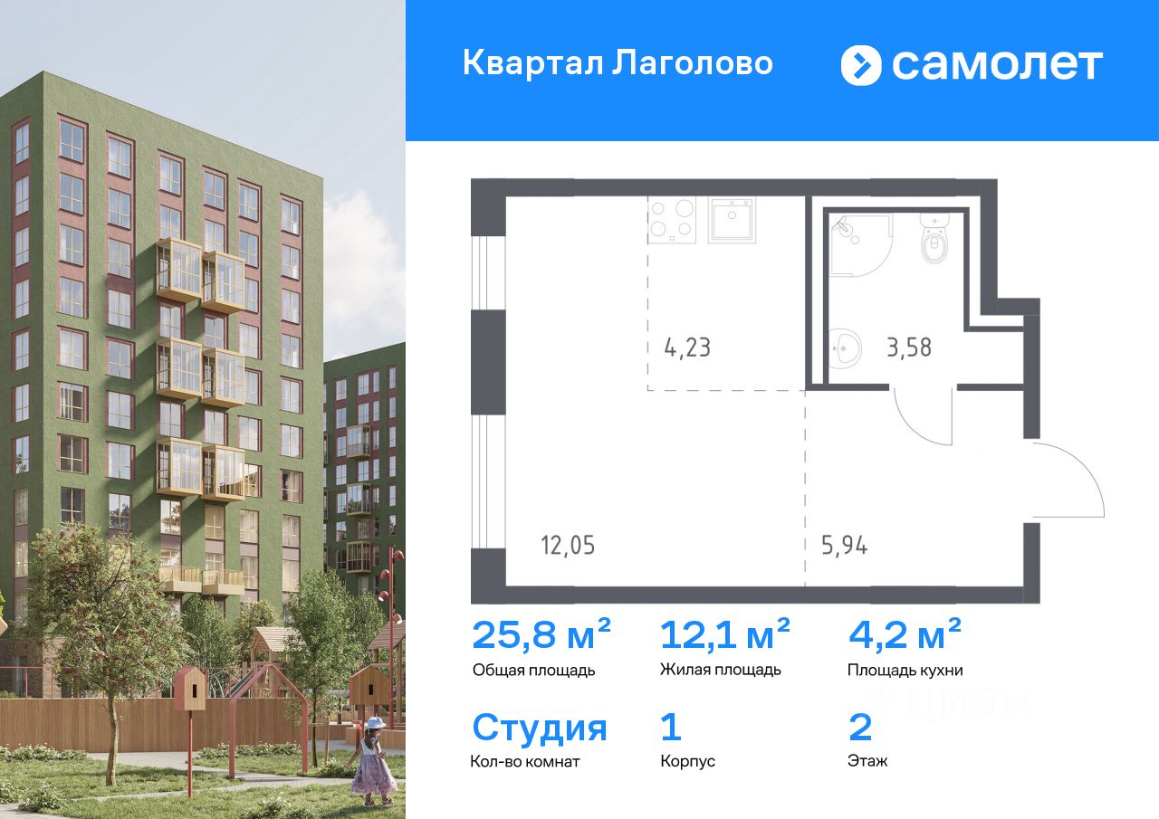 Строим кварталы для жизни с заботой о будущем. Предлагается квартира студия комфорт-класса 25,8 кв.м в корпусе 1 на 2 этаже, в ЖК "Квартал Лаголово"