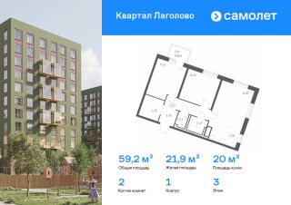 Строим кварталы для жизни с заботой о будущем. Предлагается 2-комнатная квартира комфорт-класса 59,16 кв.м в корпусе 1 на 3 этаже, в ЖК "Квартал Лаголово"