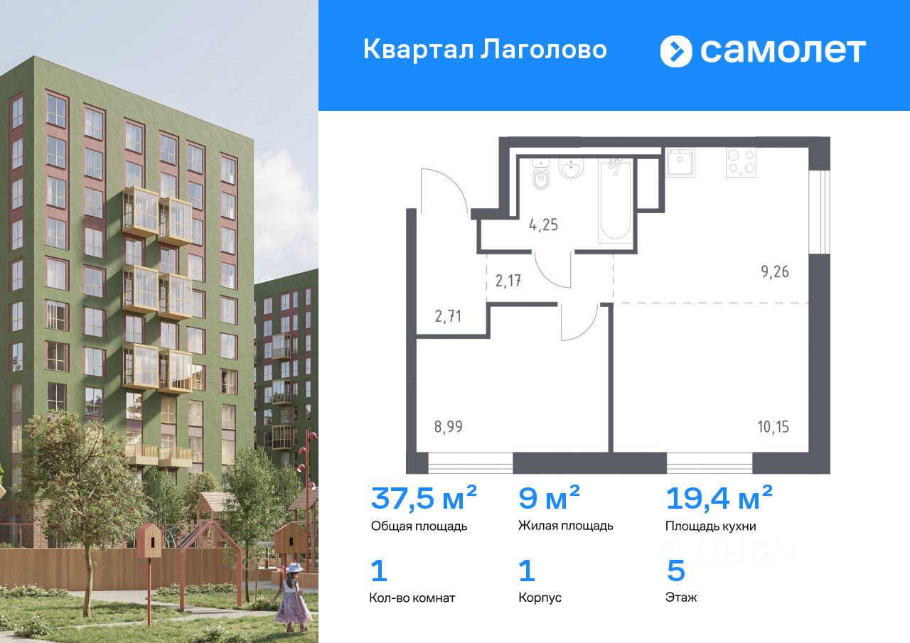 Строим кварталы для жизни с заботой о будущем. Предлагается 1-комнатная квартира комфорт-класса 37,53 кв.м в корпусе 1 на 5 этаже, в ЖК "Квартал Лаголово"