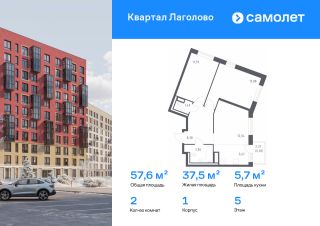 Строим кварталы для жизни с заботой о будущем. Предлагается 2-комнатная квартира комфорт-класса 57,58 кв.м в корпусе 1 на 5 этаже, в ЖК "Квартал Лаголово"