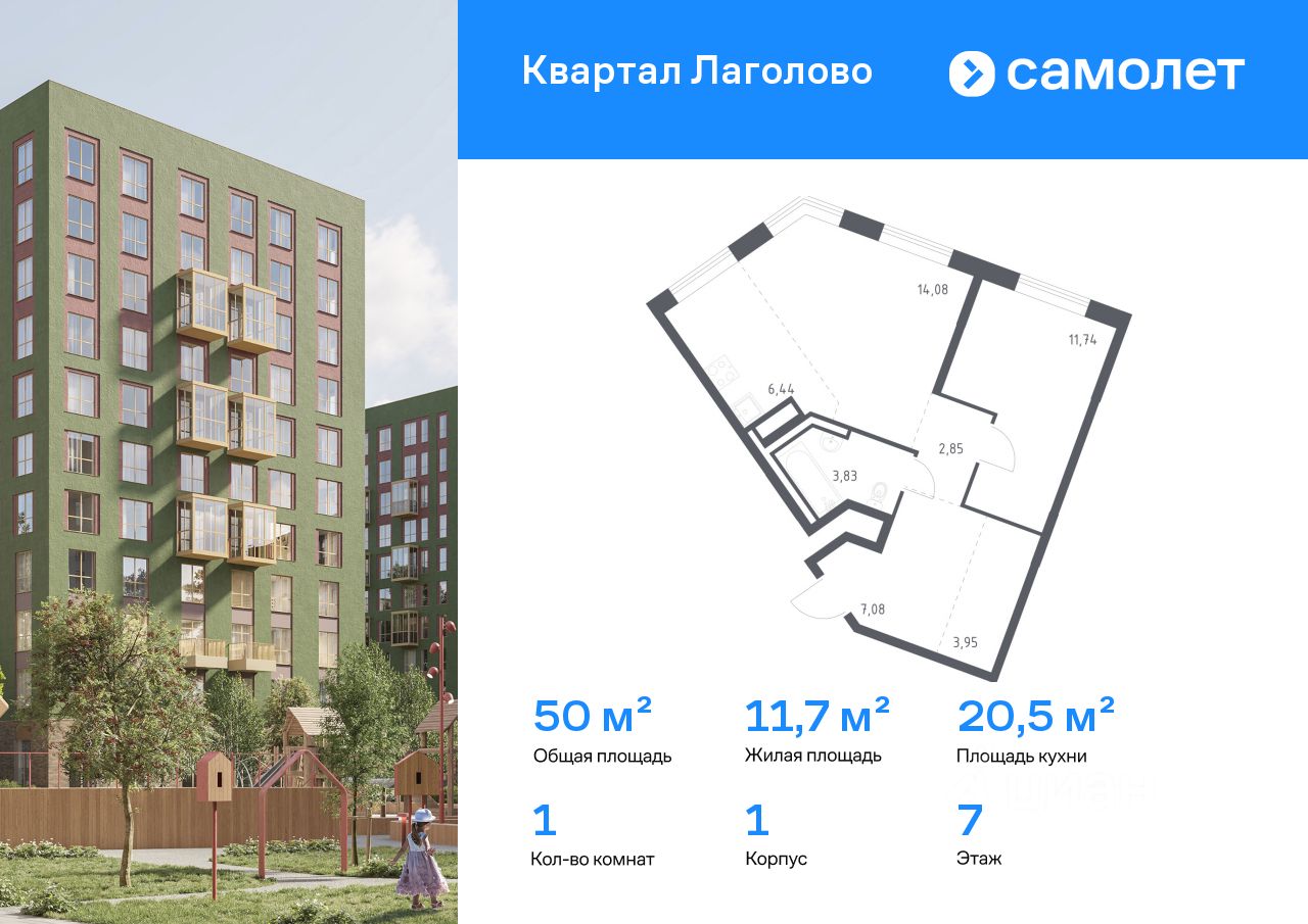 Строим кварталы для жизни с заботой о будущем. Предлагается 1-комнатная квартира комфорт-класса 49,97 кв.м в корпусе 1 на 7 этаже, в ЖК "Квартал Лаголово"