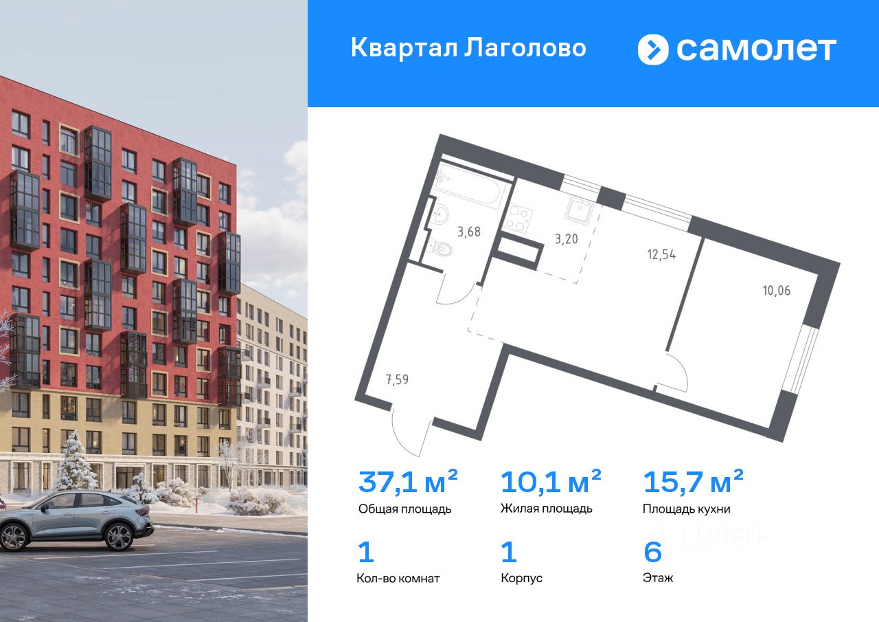 Строим кварталы для жизни с заботой о будущем. Предлагается 1-комнатная квартира комфорт-класса 37,07 кв.м в корпусе 1 на 6 этаже, в ЖК "Квартал Лаголово"