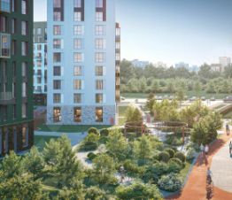 Занимайтесь йогой в воркаут-пространстве и бегайте по зеленому бульвару. Предусмотрели догхабы, площадь с амфитеатром и паркинги за пределами двора.