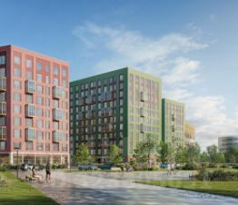 Дома высотой до 11 этажей с панорамными балконами выполнены в скандинавском стиле.