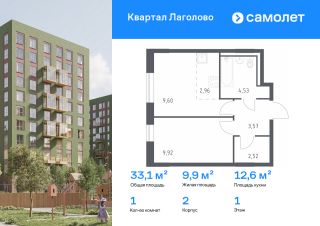 Строим кварталы для жизни с заботой о будущем. Предлагается 1-комнатная квартира комфорт-класса 33,1 кв.м в корпусе 2 на 1 этаже, в ЖК "Квартал Лаголово"