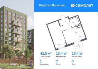 Строим кварталы для жизни с заботой о будущем. Предлагается 1-комнатная квартира комфорт-класса 42,53 кв.м в корпусе 2 на 5 этаже, в ЖК "Квартал Лаголово"