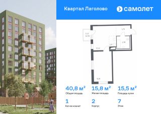 Строим кварталы для жизни с заботой о будущем. Предлагается 1-комнатная квартира комфорт-класса 40,8 кв.м в корпусе 2 на 7 этаже, в ЖК "Квартал Лаголово"