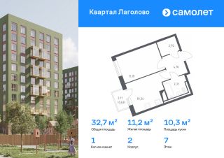 Строим кварталы для жизни с заботой о будущем. Предлагается 1-комнатная квартира комфорт-класса 32,73 кв.м в корпусе 2 на 7 этаже, в ЖК "Квартал Лаголово"