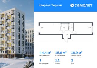 Строим кварталы для жизни с заботой о будущем. Предлагается 1-комнатная квартира комфорт-класса 44,43 кв.м в корпусе 1.1 на 2 этаже, в ЖК "Квартал Торики"