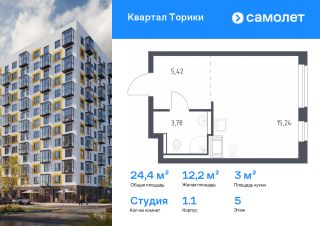 Строим кварталы для жизни с заботой о будущем. Предлагается квартира студия комфорт-класса 24,44 кв.м в корпусе 1.1 на 5 этаже, в ЖК "Квартал Торики"