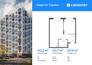 Строим кварталы для жизни с заботой о будущем. Предлагается 1-комнатная квартира комфорт-класса 40,19 кв.м в корпусе 1.1 на 5 этаже, в ЖК "Квартал Торики"