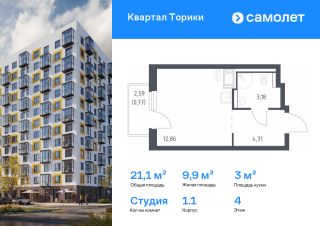 Строим кварталы для жизни с заботой о будущем. Предлагается квартира студия комфорт-класса 21,12 кв.м в корпусе 1.1 на 4 этаже, в ЖК "Квартал Торики"