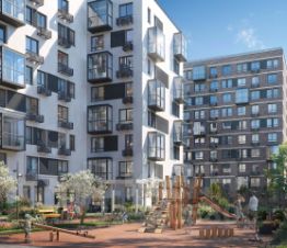 Корпуса высотой 710 этажей с фасадами в природных оттенках. Приватные дворы-парки без машин — с тренажерами и детскими площадками. Есть зеленый бульвар и сквер для отдыха. Предусмотрен открытый паркинг.