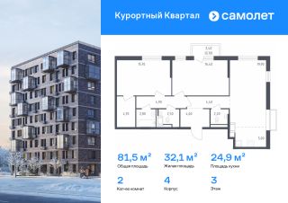 Строим кварталы для жизни с заботой о будущем. Предлагается 2-комнатная квартира комфорт-класса 81,5 кв.м в корпусе 4 на 3 этаже, в ЖК "Курортный Квартал"