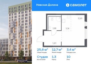Строим кварталы для жизни с заботой о будущем. Предлагается квартира студия комфорт-класса 25,8 кв.м в корпусе 1.3 на 10 этаже, в ЖК "Невская Долина"