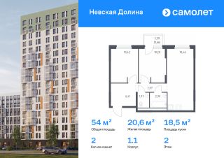 Строим кварталы для жизни с заботой о будущем. Предлагается 2-комнатная квартира комфорт-класса 53,99 кв.м в корпусе 1.1 на 2 этаже, в ЖК "Невская Долина"