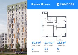 Строим кварталы для жизни с заботой о будущем. Предлагается 2-комнатная квартира комфорт-класса 50,53 кв.м в корпусе 1.1 на 6 этаже, в ЖК "Невская Долина"