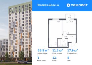 Строим кварталы для жизни с заботой о будущем. Предлагается 1-комнатная квартира комфорт-класса 38,91 кв.м в корпусе 1.1 на 5 этаже, в ЖК "Невская Долина"