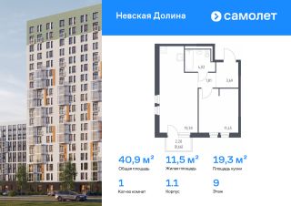 Строим кварталы для жизни с заботой о будущем. Предлагается 1-комнатная квартира комфорт-класса 40,93 кв.м в корпусе 1.1 на 9 этаже, в ЖК "Невская Долина"