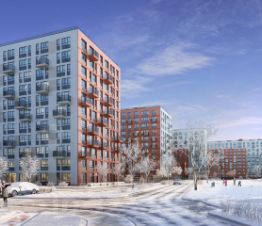 Корпуса высотой 11 этажей с французскими и панорамными балконами отделаны штукатуркой и облицовочным кирпичом. Вдохновение для палитры нам подарили оттенки рассветного неба: терракотовый, персиковый, песочный.