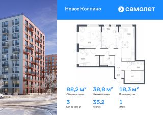 Строим кварталы для жизни с заботой о будущем. Предлагается 3-комнатная квартира комфорт-класса 88,16 кв.м в корпусе 35.2 на 1 этаже, в ЖК "Новое Колпино"
