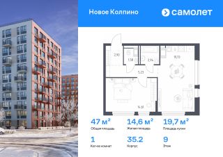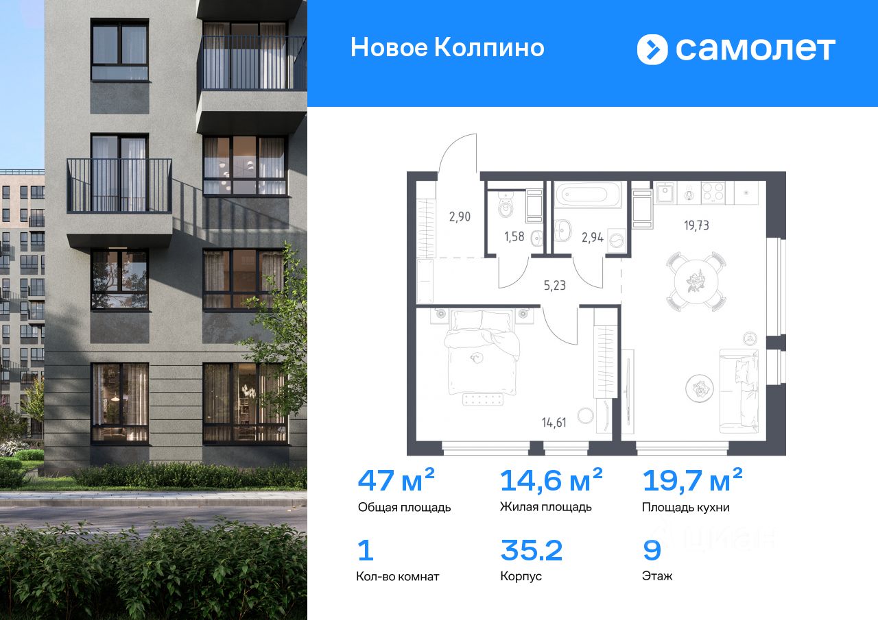 Строим кварталы для жизни с заботой о будущем. Предлагается 1-комнатная квартира комфорт-класса 46,99 кв.м в корпусе 35.2 на 9 этаже, в ЖК "Новое Колпино"