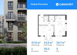 Строим кварталы для жизни с заботой о будущем. Предлагается 1-комнатная квартира комфорт-класса 47,78 кв.м в корпусе 35.2 на 5 этаже, в ЖК "Новое Колпино"