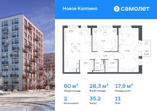 Строим кварталы для жизни с заботой о будущем. Предлагается 2-комнатная квартира комфорт-класса 60,02 кв.м в корпусе 35.2 на 11 этаже, в ЖК "Новое Колпино"