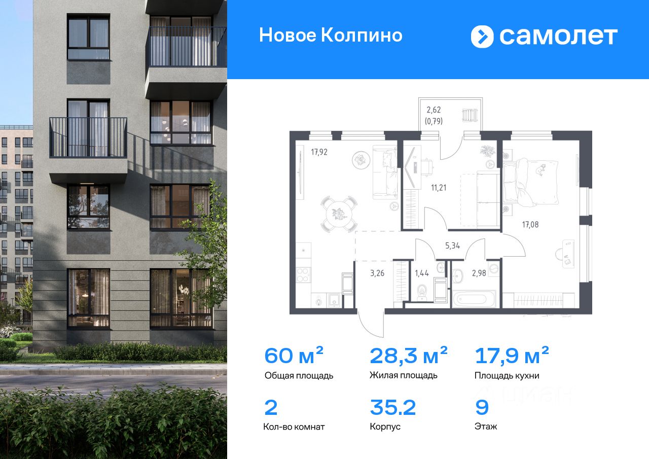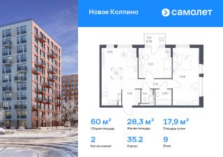 Строим кварталы для жизни с заботой о будущем. Предлагается 2-комнатная квартира комфорт-класса 60,02 кв.м в корпусе 35.2 на 9 этаже, в ЖК "Новое Колпино"