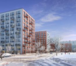 Корпуса высотой 11 этажей с французскими и панорамными балконами отделаны штукатуркой и облицовочным кирпичом. Вдохновение для палитры нам подарили оттенки рассветного неба: терракотовый, персиковый, песочный.