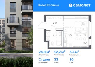 Строим кварталы для жизни с заботой о будущем. Предлагается квартира студия комфорт-класса 24,81 кв.м в корпусе 33 на 10 этаже, в ЖК "Новое Колпино"