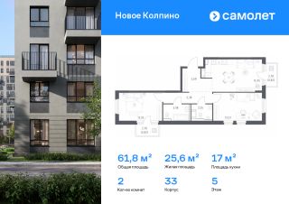Строим кварталы для жизни с заботой о будущем. Предлагается 2-комнатная квартира комфорт-класса 61,8 кв.м в корпусе 33 на 5 этаже, в ЖК "Новое Колпино"