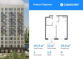 Строим кварталы для жизни с заботой о будущем. Предлагается 1-комнатная квартира комфорт-класса 40,37 кв.м в корпусе 1.3 на 4 этаже, в ЖК "Новые Лаврики"