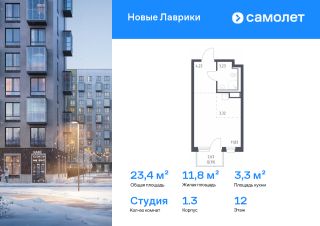 Строим кварталы для жизни с заботой о будущем. Предлагается квартира студия комфорт-класса 23,39 кв.м в корпусе 1.3 на 12 этаже, в ЖК "Новые Лаврики"