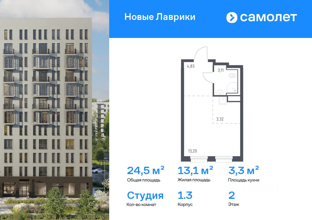 Строим кварталы для жизни с заботой о будущем. Предлагается квартира студия комфорт-класса 24,46 кв.м в корпусе 1.3 на 2 этаже, в ЖК "Новые Лаврики"