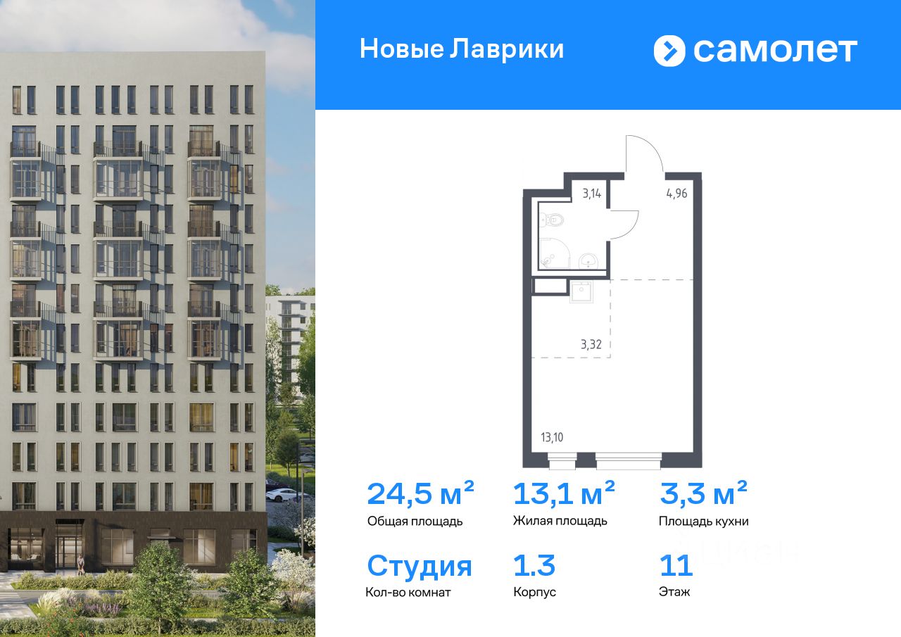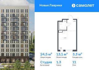 Строим кварталы для жизни с заботой о будущем. Предлагается квартира студия комфорт-класса 24,52 кв.м в корпусе 1.3 на 11 этаже, в ЖК "Новые Лаврики"