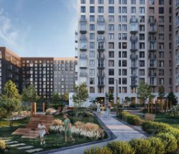 В приватном дворе-парке без машин дети будут играть на площадках в экостиле, а взрослые — заниматься йогой на воркаут-площадках. Для машин — плоскостной и подземный паркинги.