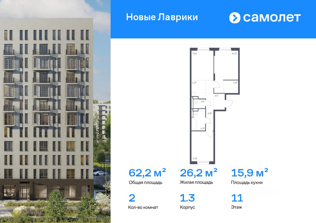 Строим кварталы для жизни с заботой о будущем. Предлагается 2-комнатная квартира комфорт-класса 62,17 кв.м в корпусе 1.3 на 11 этаже, в ЖК "Новые Лаврики"