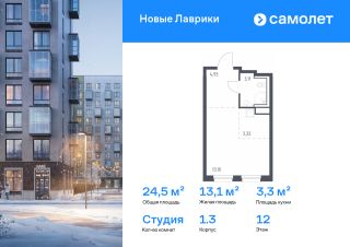 Строим кварталы для жизни с заботой о будущем. Предлагается квартира студия комфорт-класса 24,46 кв.м в корпусе 1.3 на 12 этаже, в ЖК "Новые Лаврики"