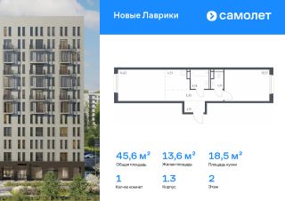 Строим кварталы для жизни с заботой о будущем. Предлагается 1-комнатная квартира комфорт-класса 45,58 кв.м в корпусе 1.3 на 2 этаже, в ЖК "Новые Лаврики"