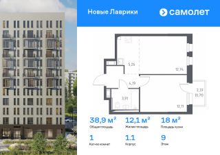 Строим кварталы для жизни с заботой о будущем. Предлагается 1-комнатная квартира комфорт-класса 38,92 кв.м в корпусе 1.1 на 9 этаже, в ЖК "Новые Лаврики"